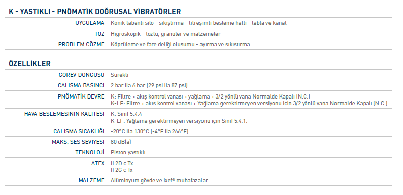 K Serisi Yastıklı Tip Yağlamasız Pnömatik Vibratör