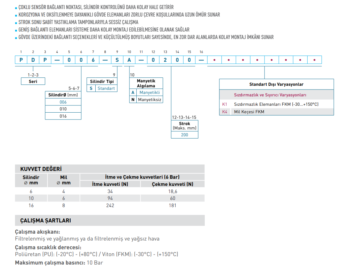 Bu ürün, kompakt alanlarda stabil ve sensör uyumlu pnömatik doğrusal hareket gerektiren uygulamalar için uygundur.