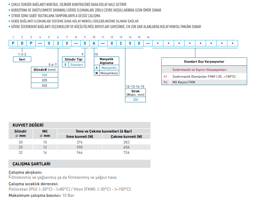 Bu ürün, kompakt alanlarda stabil ve sensör uyumlu pnömatik doğrusal hareket gerektiren uygulamalar için uygundur.